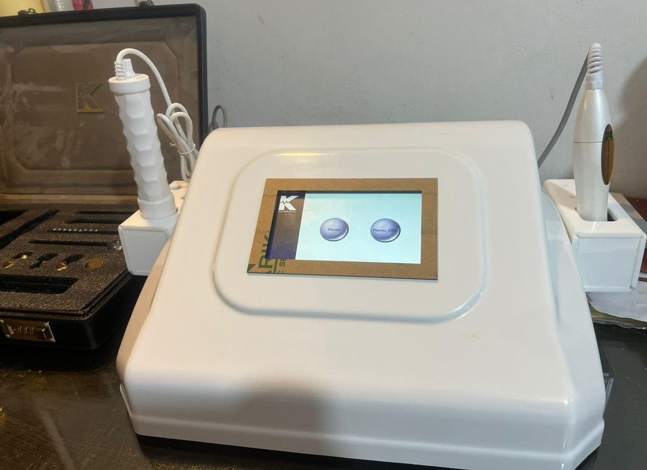 دستگاه پلاسما ED DBD با مجوز آیمد از اداره کل تجهیزات پزشکی دارای تاییدیه رسمی از بیمارستان پوست رازی و لقمان* مجهز به 2 هندپیس حرفه ای ED و DBD پلاسما * مجهز به ۸ پروب پیشرفته برای پوشش کامل درمانی * دارای بیش از 62 اندیکاسیون درمانی دستگاه ED پلاسما (پلاسما گرم) دستگاه DBD پلاسما (پلاسما سرد) دستگاه مکنده دود انواع پروب‌های دستگاه پلاسما و کاربرد آن‌ها پروب مخروطی (پلاسما گرم): برای حذف انواع ضایعات پوستی مانند لک، خال، فریکل، اسکین‌تگ، وارت، فلت‌وارت و زگیل‌ها بدون تماس مستقیم با پوست و با حداقل آسیب بافتی. پروب لیفت بزرگ و کوچک (پلاسما گرم): مخصوص لیفت صورت، گردن و واژن؛ قابل اتوکلاو و قابل استفاده با ژل پایه آب. پروب کوچک برای نواحی محدودتر کاربرد دارد. پروب قارچی (پلاسما سرد): کاربرد درمانی و جوانسازی شامل از بین بردن قارچ، باکتری و ویروس، کاهش منافذ باز پوست، آبرسانی، تقویت ایمنی پوست و کاهش التهاب. پروب نوک‌تیز (پلاسما سرد): مخصوص درمان ضایعات ویروسی مانند آکنه فعال، تبخال و زخم‌های باز؛ با خاصیت پاکسازی، خشک‌سازی و سفت‌سازی ناحیه درمان. پروب قاشقی (پلاسما سرد): ویژه کلینیک‌های زنان؛ برای پاکسازی کانال واژن، درمان زخم دهانه رحم، از بین بردن عفونت‌ها و بوی نامطبوع واژن. پروب شانه‌ای (پلاسما سرد): جهت افزایش گردش خون پوست سر، تقویت فولیکول، کمک به رشد مو و ضدعفونی کامل پوست سر. پروب سوزنی (پلاسما گرم): برای شیرینک و جوانسازی بدون تماس مستقیم؛ کاربرد در بلفاروپلاستی، درمان استریا، چین‌وچروک و اسکارها. بعد نصب و راه اندازی، هزینه دریافت میشود. 10 سال خدمات پس از فروش و یک سال ضمانت تعویض کالا